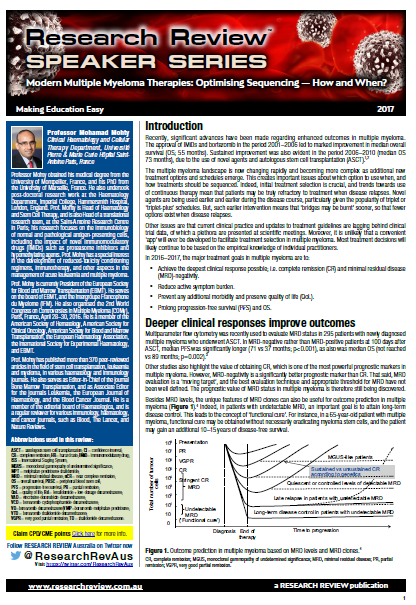 Speaker Series - Optimising sequencing of new multiple myeloma therapies