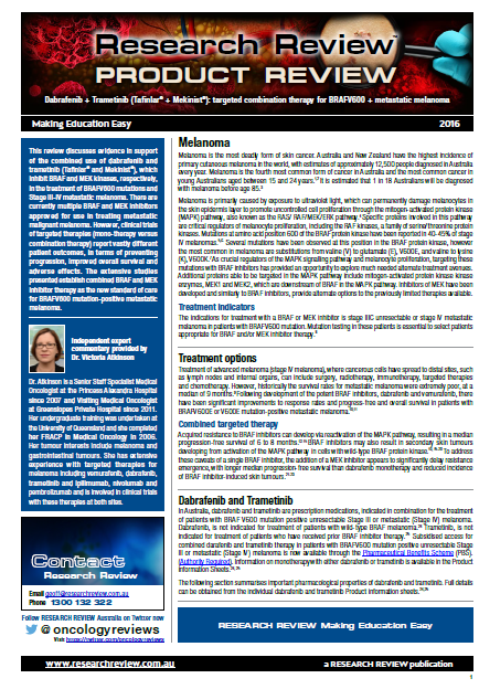 Independent expert commentary provided by Dr. Victoria Atkinson who is a Senior Staff Specialist Medical Oncologist at the Princess Alexandra Hospital since 2007 and Visiting Medical Oncologist at Greenslopes Private Hospital since 2011.