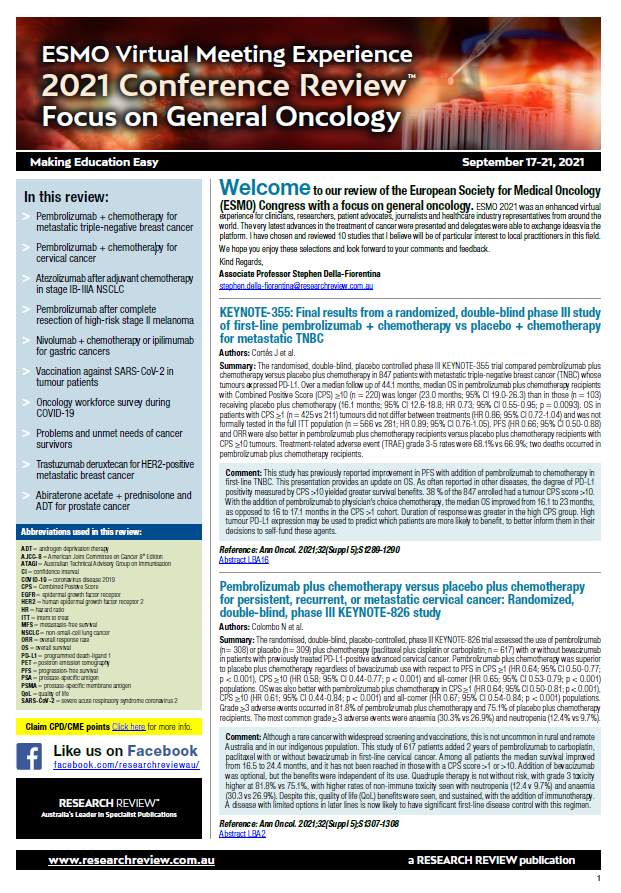 ESMO Congress 2021 Conference Review - focus on general oncology