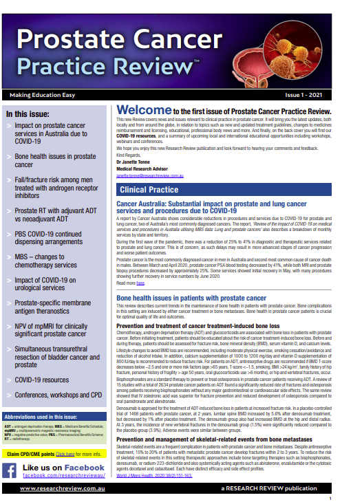 Associate Professor Nathan Lawrentschuk providing topical, relevant and accessible information for health professionals with an interest in prostate cancer. The review is a summary of what we think are some of the most significant new papers in this area along with local commentary on why they are important and how the findings can potentially affect local practice. Links to the abstracts or fully published papers are also provided.