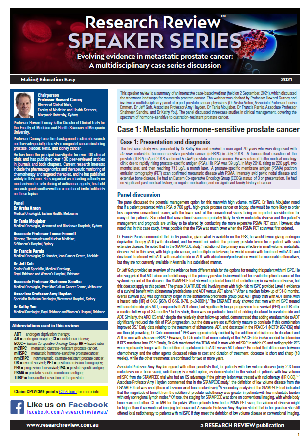 We’re delighted to add a summary of a recent webinar event titled; Evolving evidence in metastatic prostate cancer: A multidisciplinary case series discussion.