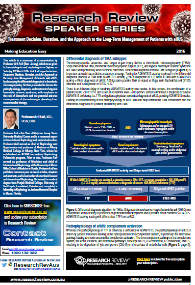 It discusses the pathophysiology, diagnosis, and treatment of atypical haemolytic uraemic syndrome, with emphasis on the role of biomarkers and the potential adverse consequences of discontinuing or deviating from recommended therapy.