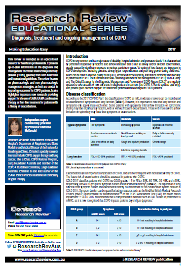 The review includes guidance and commentary from Professor Christine McDonald, Director of the Austin Hospital’s Department of Respiratory and Sleep Medicine, Chair of the COPD National Program for the Lung Foundation Australia, and member of the COPD-X Guidelines Committee.