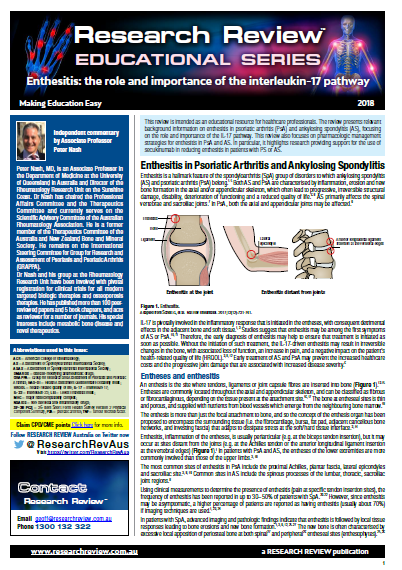 Educational Series on Enthesitis: the role and importance of the interleukin-17 pathway. This review covers pathophysiology, treatments and some of the key studies.