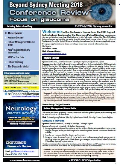 In this review: Keynote Lecture Patient Management Round Table XEN: Supporting Early Intervention XEN – The Data Patient Profiling The Disease in Motion