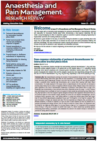 Pain Management Research Review is currently published in conjunction with Anaesthesia Research Review. Expert commentary for Anaesthesia Research Review is provided by Dr John Barnard.