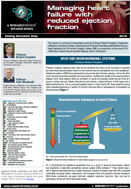 This review is a summary of presentations given by Professor Richard Troughton, Department of Medicine, University of Otago, Christchurch and Professor Peter Macdonald, Medical Director, Heart Transplant Unit, St Vincent’s Hospital, Sydney, NSW, at a symposium at the recent 2018 CSANZ New Zealand Annual Scientific Meeting, held in Christchurch.