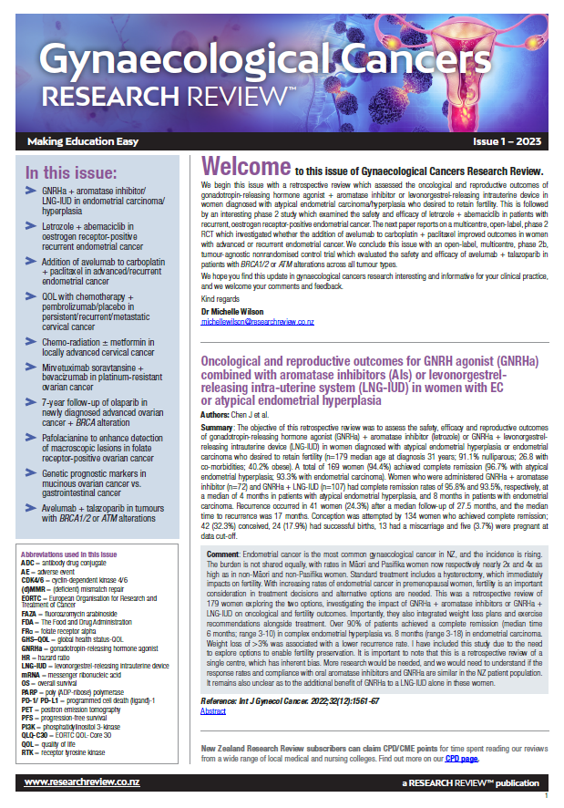 This Review features key medical articles from global journals with commentary from Dr Michelle Wilson.