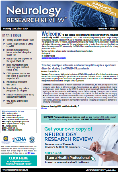 This Review features key medical articles from global neurology journals with commentary from Dr Barry Snow, Dr Jennifer Pereira and Dr John Mottershead. The Review covers topics such as neuromuscular diseases, peripheral neurology, neurodegenerative diseases, alzheimer's disease, epileptic drug therapy, migraine prophylaxis, and multiple sclerosis.