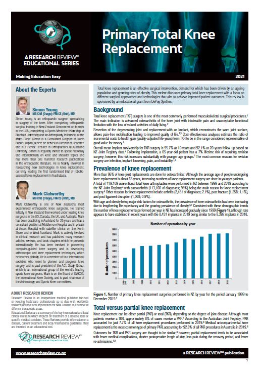 Total knee replacement is an effective surgical intervention, demand for which has been driven by an ageing population and growing rates of obesity. This review discusses primary total knee replacement with a focus on different surgical approaches and technologies that aim to achieve improved patient outcomes. This review is sponsored by an educational grant from DePuy Synthes.